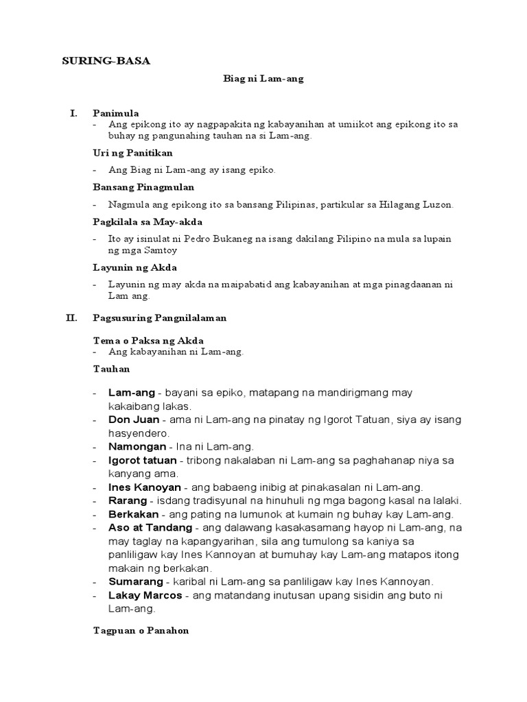 Biag ni lam ang buod aral. The story was handed down orally for generations before it was written down around 1640 assumedly by a blind Ilokano bard named Pedro Bucaneg. BIAG NI LAM-ANG 1. Ang Buhay Ni Lam-Ang Siyam na buwan bago siya isinilang sa isang maharlikang familia namundok ang kanyang ama upang sugpuin ang isang masamang pangkat ng mga Igorot.