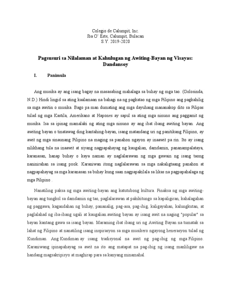 Halimbawa ng sitwasyong pangwika sa text. May alam ka pa bang ibang katutubong awitin na. ANO ANG IBIG SABIHIN NG DADANSOY.